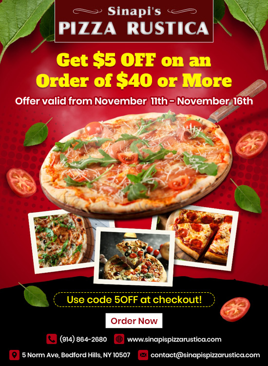 Enjoy $5 OFF your favorite food when you order $40 or more!!